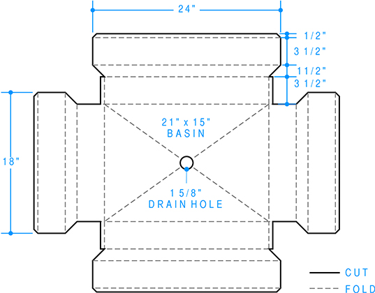 to fold out of a single sheet of zinc and made by a local metal fabricator.